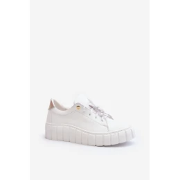 Zazoo 2919 Damskie Skórzane Półbuty Na Grubej Podeszwie Białe