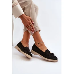 Zazoo 3420 Zamszowe Mokasyny Damskie Na Płaskim Obcasie Czarne