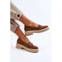 Zazoo 3429 Zamszowe Mokasyny Damskie Z Ozdobą Brązowe