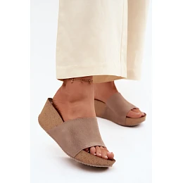 Zazoo 40311 semišové dámské pantofle na korkové platformě tmavě béžové
