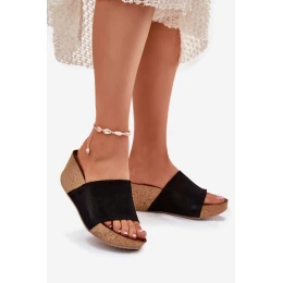 Zazoo 40311 Zamszowe Klapki Damskie Na Korkowym Koturnie Czarne