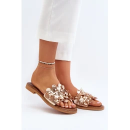 Zazoo 40381 Damskie Skórzane Klapki Na Płaskim Obcasie Złote