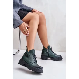 Zazoo 60483 Damskie Skórzane Botki Z Niską Cholewką Ocieplane Ciemnozielone