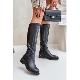 Zazoo 70140 Skórzane Kozaki Damskie Przed Kolano Ocieplane Czarne