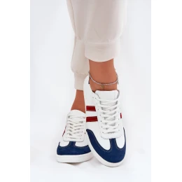 Zazoo N1068 Skórzane Niskie Sneakersy Damskie Biało-Granatowe