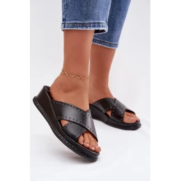 Dámské nazouváky z eko kůže jsou stylovým návrhem na letní dny. Model na pohodlném klínu zajišťuje komfort nošení a jemně zeštíhluje postavu. Vepředu jsou dva proplétané pásky ozdobené malými zlatými kuličkami, které dodávají celku jemný lesk a ženský charakter. Tyto nazouváky se skvěle hodí jak k běžným, tak k elegantnějším letním stylizacím. Při výběru velikosti se řiďte tabulkou velikostí.
