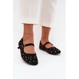 Zdobione Baleriny Damskie Z Paskiem Czarne Olivisse