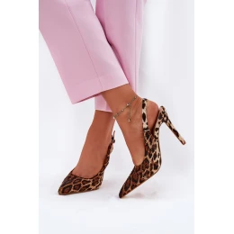 Zdobione Sandały Na Szpilce Panterka Brązowe Kemonia