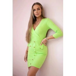 Rebrované šaty s ozdobnými gombíkmi svetlo zelené