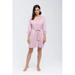 Klasický župan s čipkou a 3/4 rukávmi je ideálny na popíjanie rannej kávy. Po celej dĺžke aj na rukávoch je našitá čipka. Dĺžka ku kolenám neobmedzuje v pohybe a opasok v páse umožňuje zvýrazniť vašu siluetu. Župan je vyrobený z viskózy, ktorá je mäkká na dotyk a dokonale prilieha k telu. Nájdete ju v ružovej a čiernej farbe. Tvorí skvelý komplet s našimi košieľkami Miranda a Simone. Taká sada je ideálnym darčekom.
